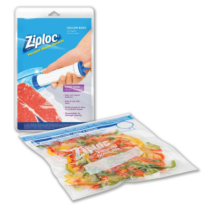 35 results for ziploc vacuum sealer bags. Related searches electric hand pressure food vacuum sealer packaging machine. $13.99 $19.99 ziploc® space bag® variety vacuum seal bag box 6 count.